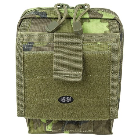 Portamapas color camuflaje woodland con doble cremallera y dos bolsos interiores.