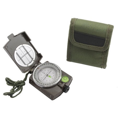 Brújula metálica artillera con unas dimensiones cerrada de 85 x 60 x 25 mm.