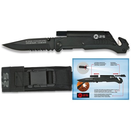NAVAJA TACTICA CON LINTERNA Y PEDERNAL NEGRA