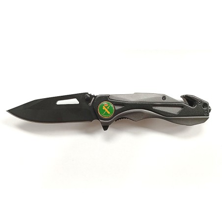 Navaja táctica de goma aluminio/negro con emblema de la Guardia Civil.